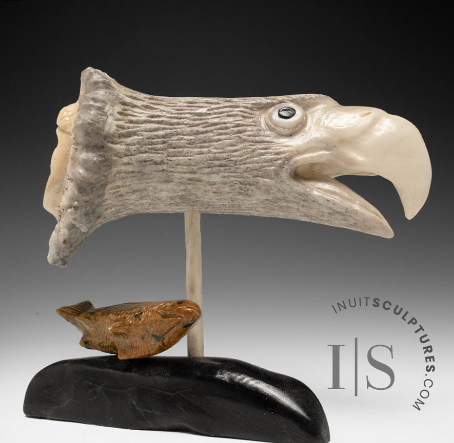 / 7" Moose Antler Eagle with Fish by Peter K. *His Royal Beakness*