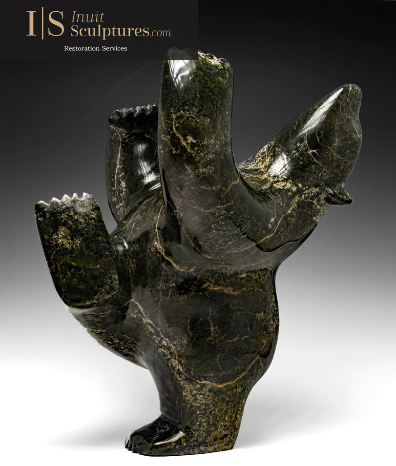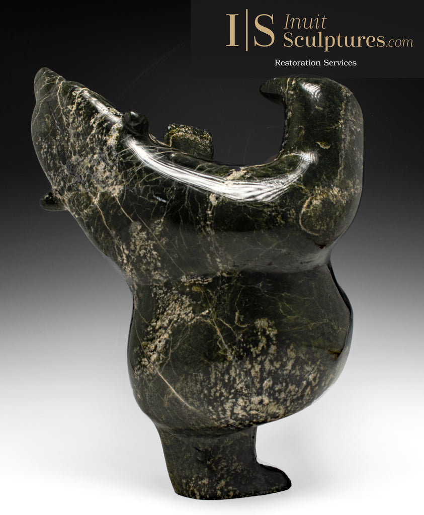 Now extremely rare, I have seen maybe one or two arching back bears like this one in the last 10 years. This carving style has made Nuna Parr one of the top 5 Elite Master Carvers in Canadian History.