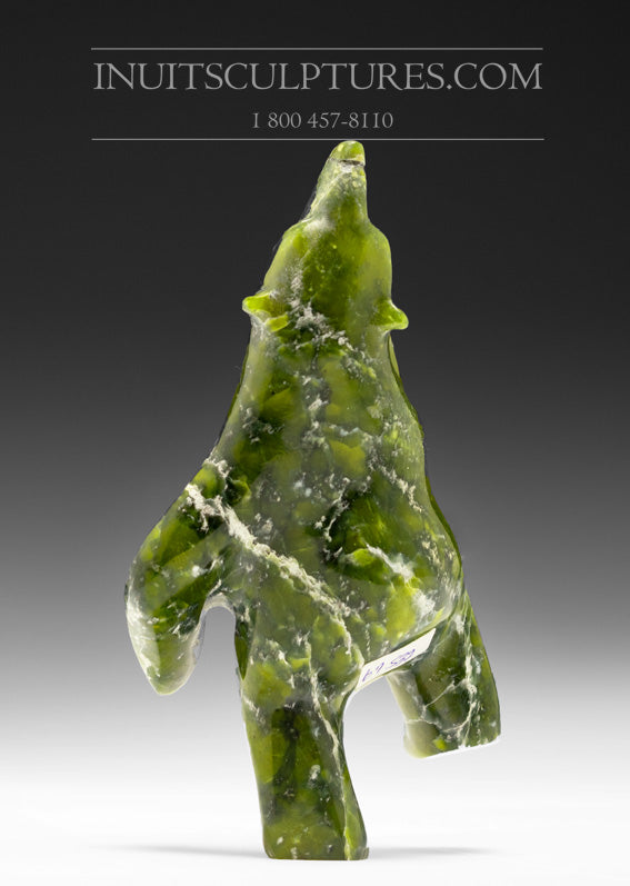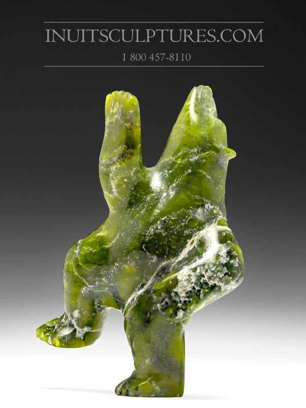 The vibrant green serpentine stone from which this bear is fashioned is of unequivocal beauty. The variations of hue within the stone creates a mesmerizing ballet of colour. The posture of the bear is dynamic. We fall in love with this creature’s innocent spirit and his bountiful energy.