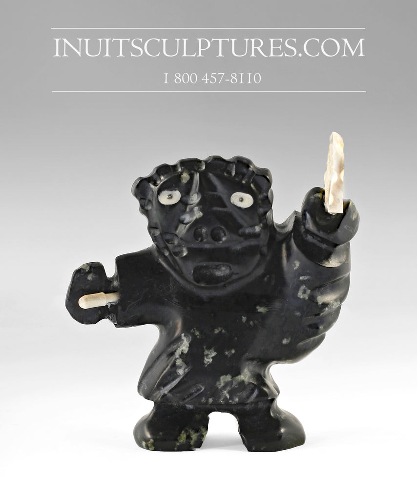 Clayton Kekneck follows in the footsteps of famed international carver Judas Ulluluq (also from Gjoa Haven). Kekneck’s creative soapstone carvings challenge the imagination of his admirers.