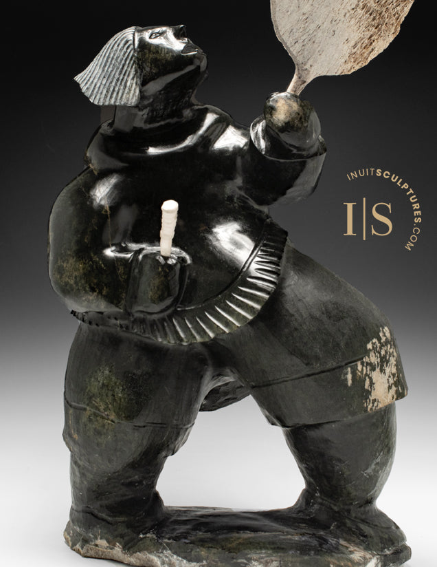 This Jaco figure portrays the pride that drum dancers feel as they perform this essential Inuit tradition of storytelling.