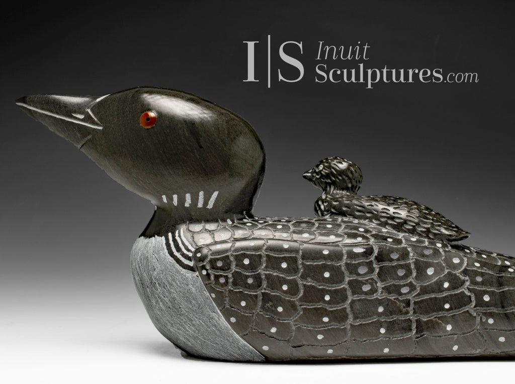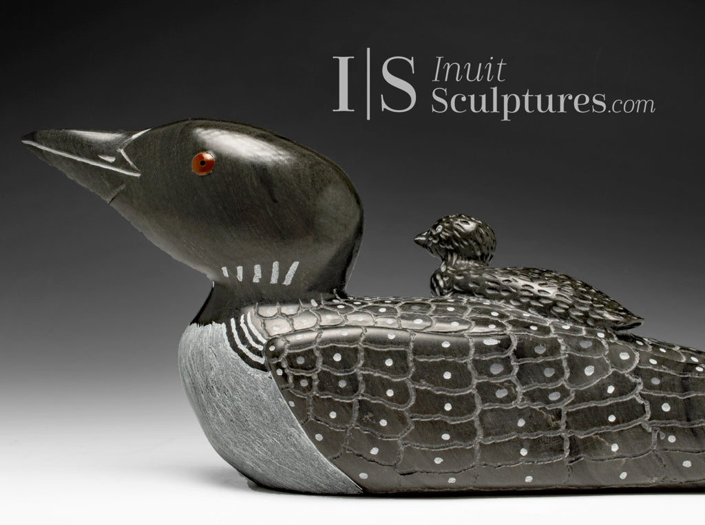 14" SIGNATURE Loon & Chick by Jimmy Iqaluq *Escaping The Floods*