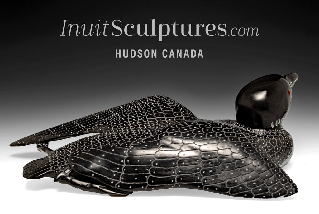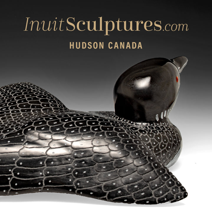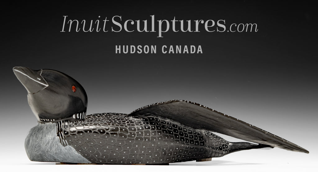 This is a true heritage masterpiece. Jimmy is a Canadian Inuit Master Carver which means that all of his work over his lifetime is sought after and cherished for its beauty and historical value. One of Jimmy's loons is preserved in the Museum of Canadian Civilization in Ottawa, Ont.