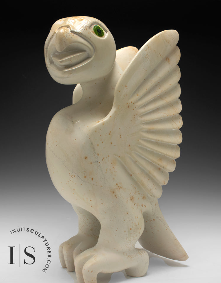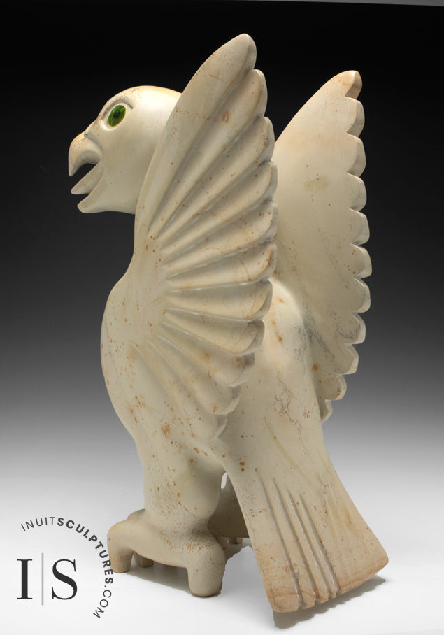 22" SIGNATURE White Marble Falcon Bird Spirit by Toonoo Sharky *Angelica*