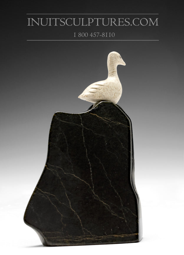 A great composition bird on cliff by the world acclaimed artist Mark Pitseolak from Kimmirut. All of his carvings are extremely gorgeous.