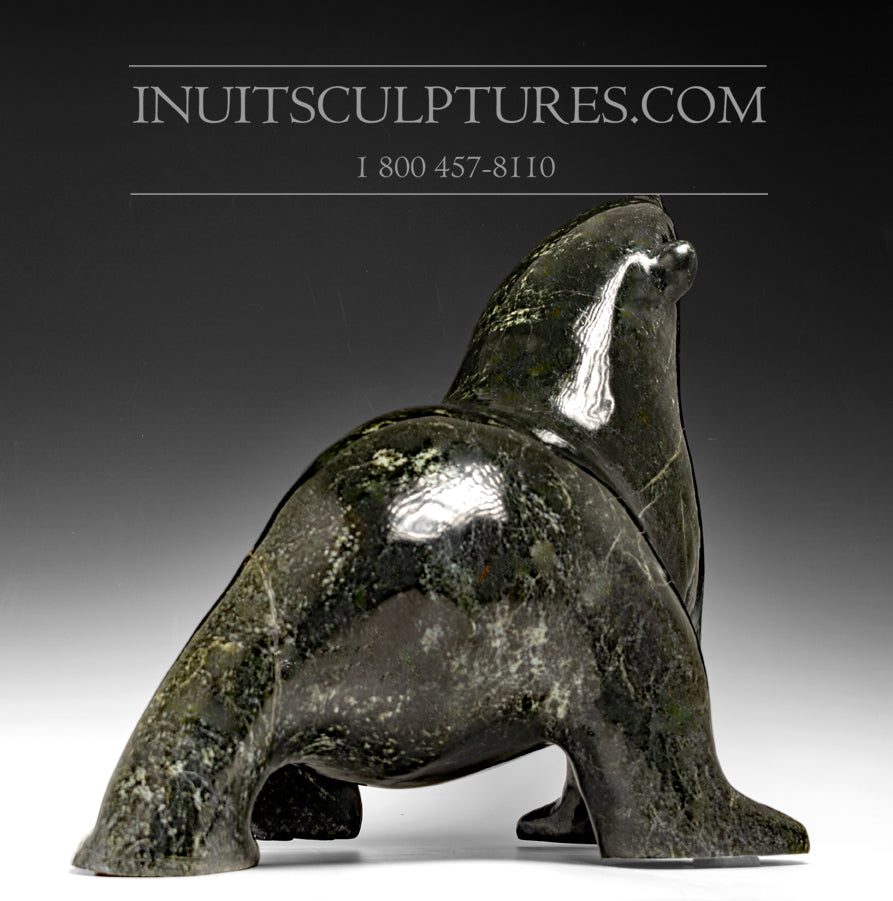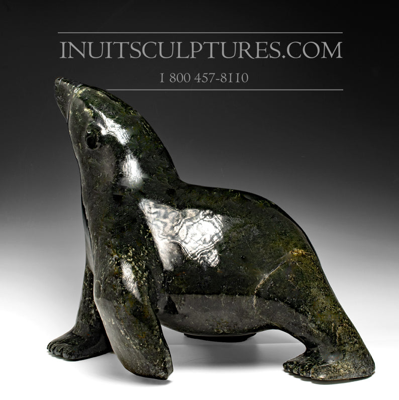 This sleek Walking bear is a rare beauty.  Nuna seldom uses dark Serpentine stone because it is extremely dense and  difficult to carve. The more common green serpentine stone is softer and easier to carve.