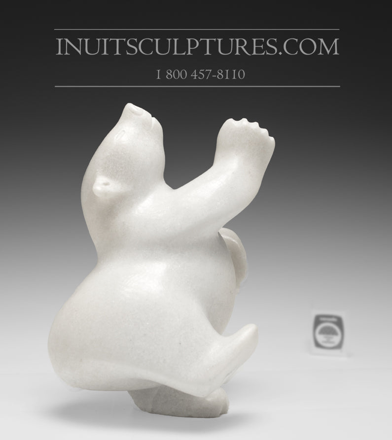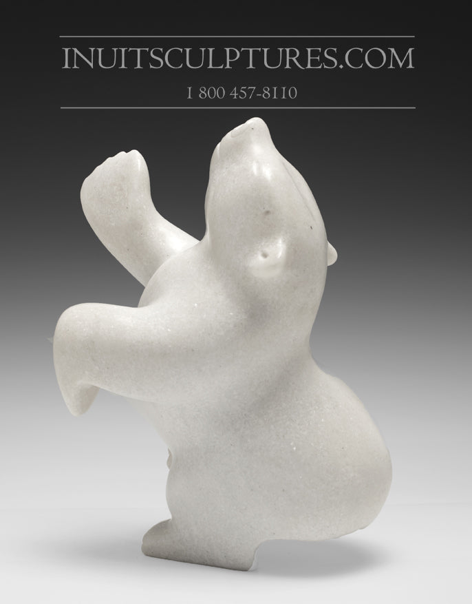 Of course the polar bear must be white but not just any white! Shaa has chosen an electrifying white marble stone transfused with veins of soft gray. This combination of marble strengthens the carving. There is a surreal flow of electrical power seeping through this bear’s limbs as he balances on one foot.