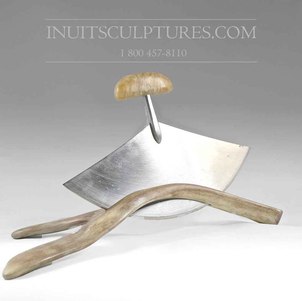 Here is another Gjoa Haven sculpture that is extraordinary and rare. . Very seldom have we seen an Ulu presented as a piece of exquisite art.