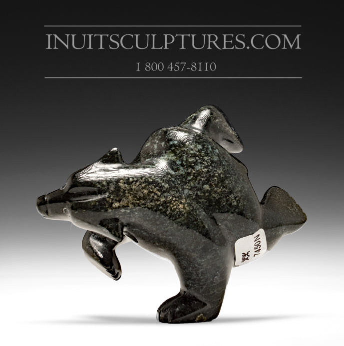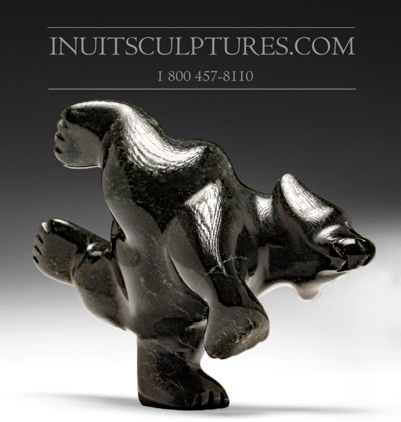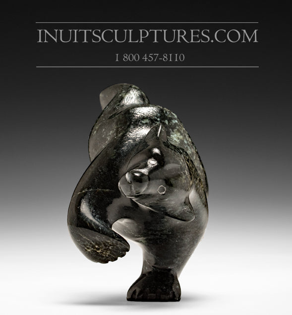 Ottokie Samayualie takes great care in choosing his stone. His carvings are made of the finest serpentine of varying green shades, and then smoothed and polished to best exhibit the lustre of the stone.