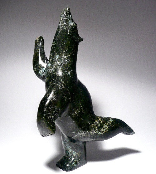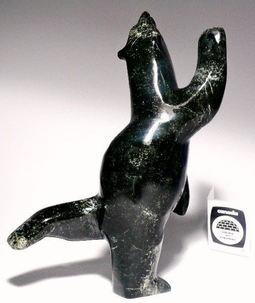 This is a spectacular dancing bear by the acclaimed Inuit artist Noo Atsiaq. This masterpiece was acquired directly from his hands in Cape Dorset (arctic Canada). This stunning Inuit carving comes with an Igloo Tag (Certified of Authenticity).