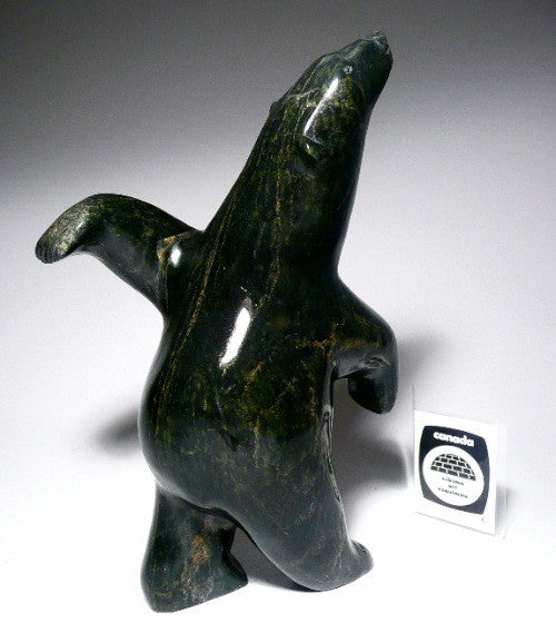 This is a spectacular dancing bear by the acclaimed Inuit artist Noo Atsiaq. This masterpiece was acquired directly from his hands in Cape Dorset (arctic C­anada). This stunning Inuit carving comes with an Igloo Tag (­­­Certified of Authenticity).