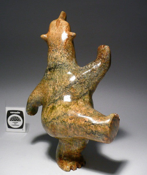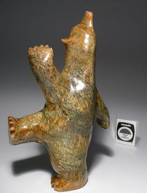 This sculpture measures over 8” tall x 5” wide x 3” deep and is made out of Cape Dorset stone serpentine. The carving is completely perfect, brand new! The sculpture is signed by the artist.