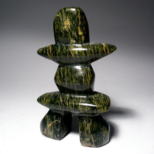 This is a gorgeous multi colored Inukshuk by Pauloosie Padluq. He specializes in Inukshuks. This particular piece has vibrant colors and really catches the attention of its audience. It is quite radiant and the soft tones and beautiful glossy finish make this Inukshuk really stand out.